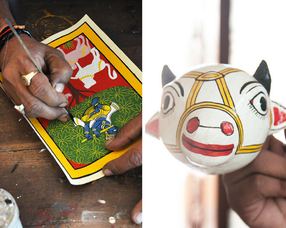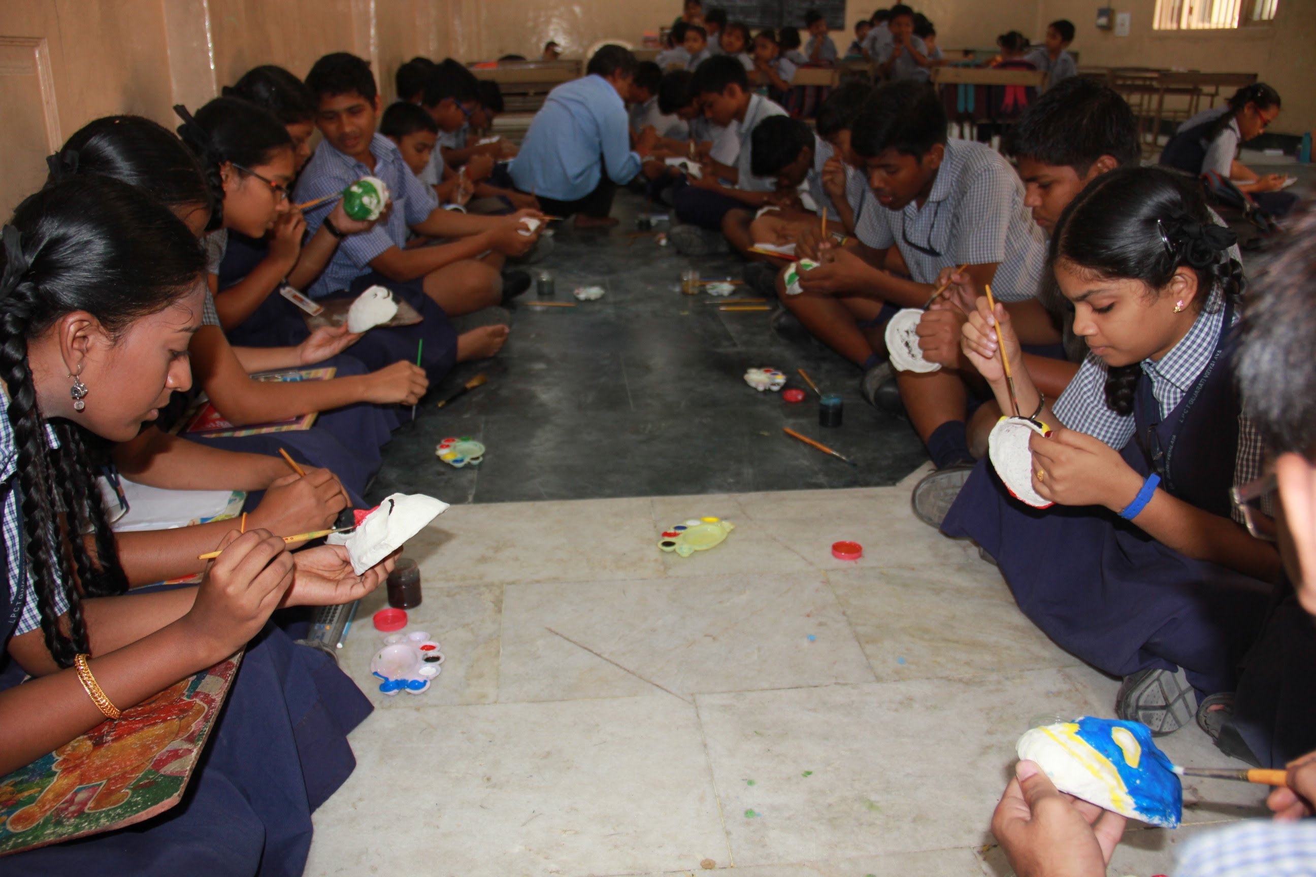 The proposal was happily accepted and our team went with the idea of introducing the ‘Cheryala art form’ to the students. We were aware that merely making a true copy of the original may enhance the copying skills but in no way, helps the student tap his creative potential. Instead of the mythological and historical themes that Cheryala art is known for the students were asked to use this art form to depict their own stories.