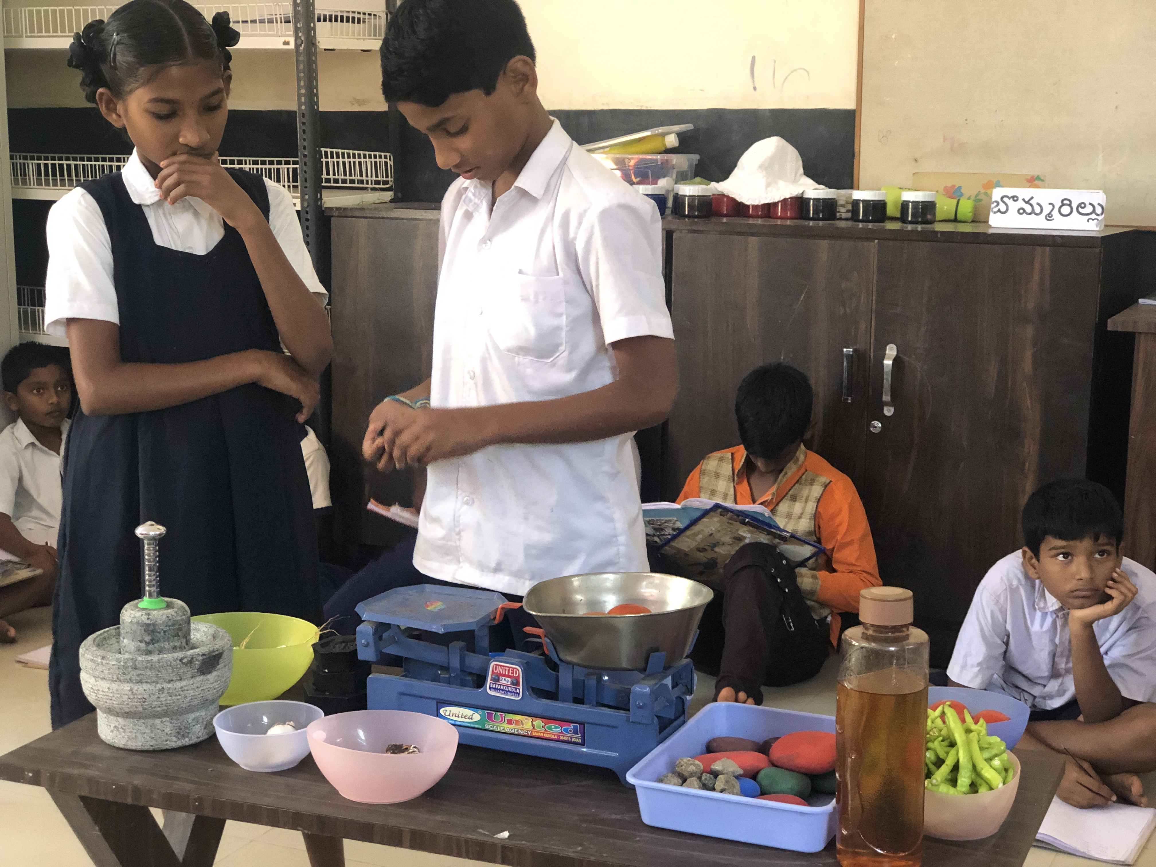 To continue with the example of making tomato chutney, it starts with the procurement of the ingredients by the students themselves. The process includes finding out the names of the ingredients in Telugu, English and Hindi. Interactive sessions help the students trace in detail their farm-to-market journey. Children learn how to raise crops in their farming classes. They have to know if the tomatoes to be used are to be raw or ripe. It is part of the syllabus for science subjects to know about the colour, taste and smell of things like Tamarind, Jeera, Mustard, clove etc.